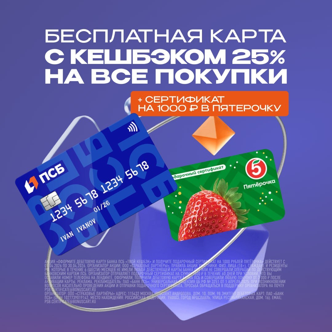 Забираем гарантированный подарок от банка за простое действие. Выбирайте сертификат в Wildberries, Золотое Яблоко, Магнит, Ozon или Giftery.