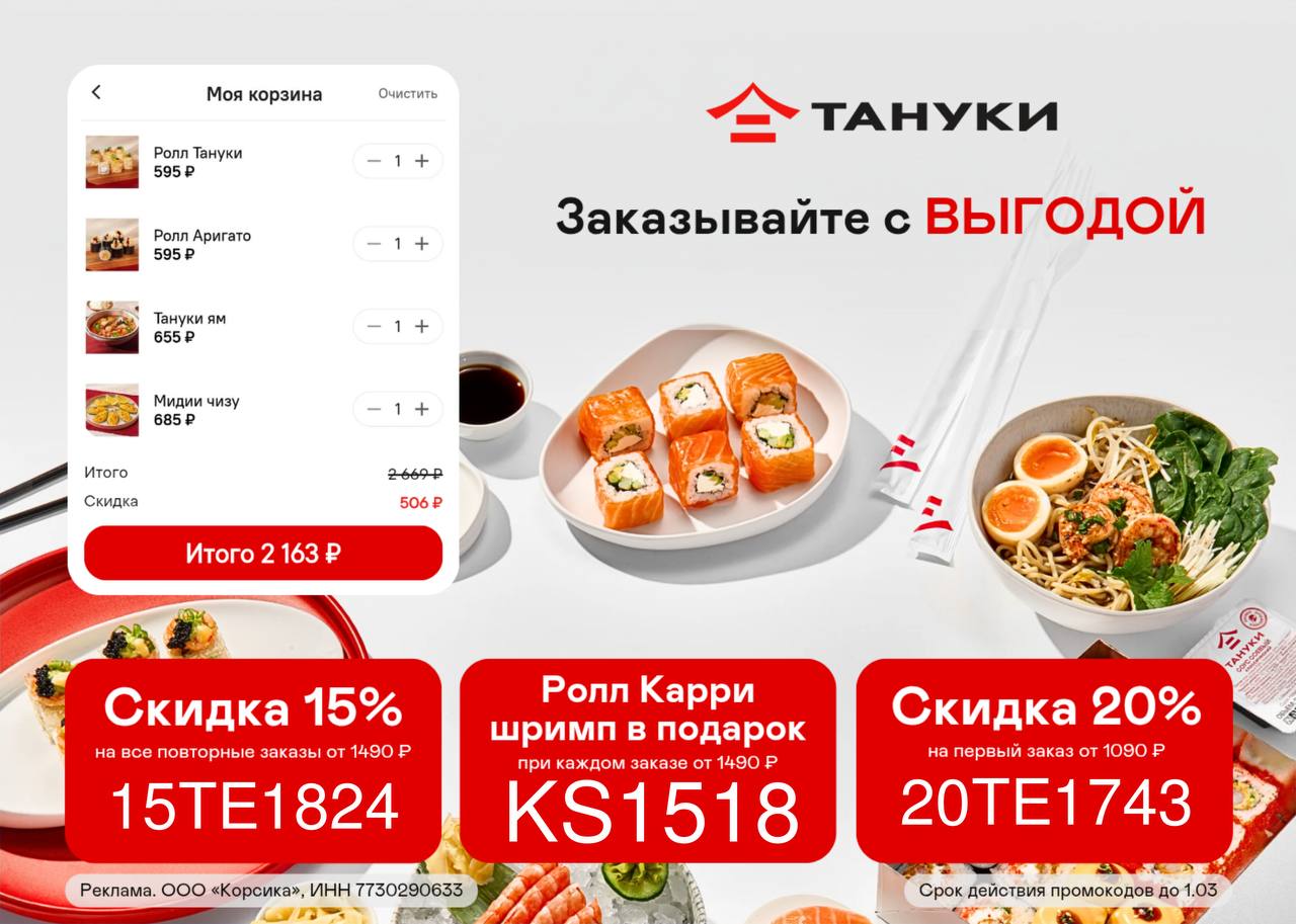 ✨ Выгодные промокоды: