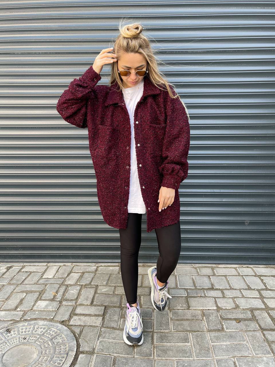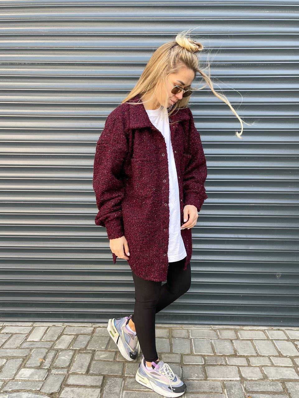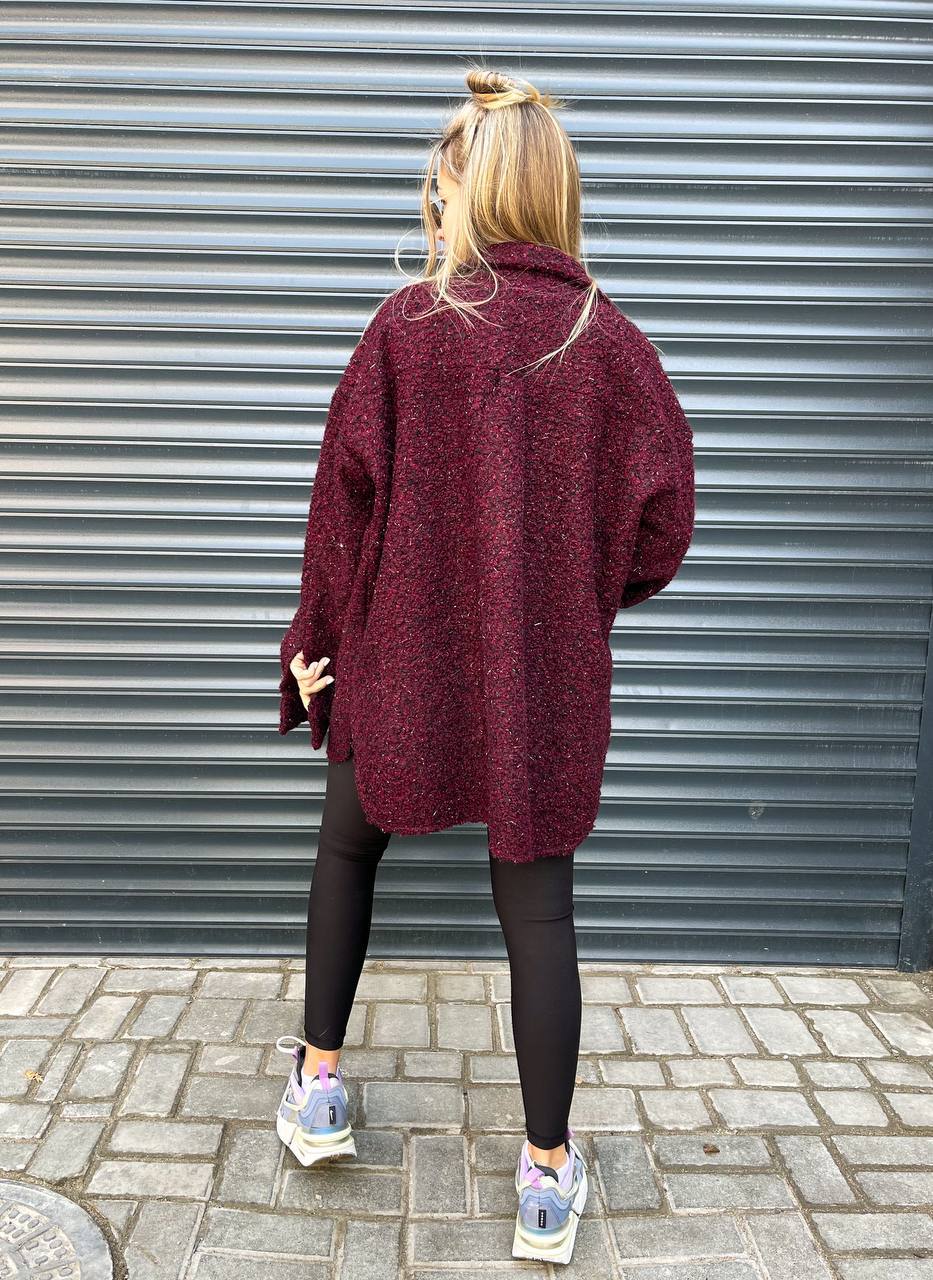 Сорочка oversize. Застібається на кнопки. Тканина м’яка і приємна до тіла. У кольорі бордо, хакі, тканина з додаванням люрексу.