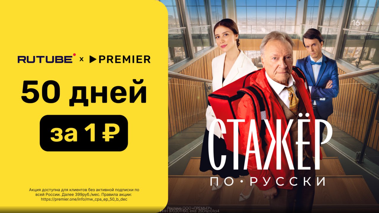 Забираем 50 дней подписки RUTUBE 🍿 х PREMIER 🎥 за 1₽!
