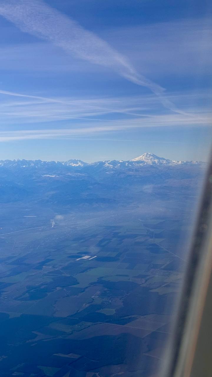 Мы ехали в поезде с младшей футбольной командой до Новосиба , чуть не оглохли!😁Переночевали и самолетом отправились в Мин.воды, где нас ждала весна. Из -20 мы попали в +8. С самолета нам посчастливилось увидеть Эльбрус во всей его красе. Пересели на машину 🚘