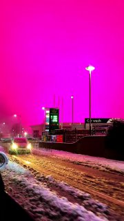 Розовое небо над Бирмингемом: из-за низких облаков и снегопада подсветка местного стадиона окрасила весь город. Хоть кому-то снегопад приносит радость и хорошее настроение.
