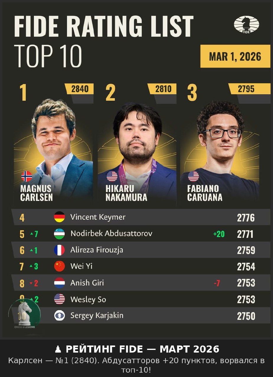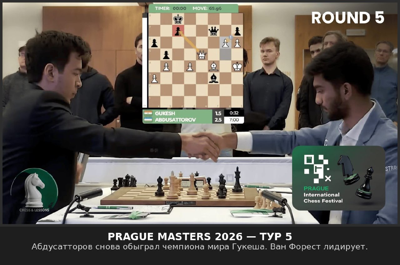 Гукеш выпал из Топ-10 (13-е место), пока без побед в Праге. Абдусатторов поднялся на 4-е место в мире.