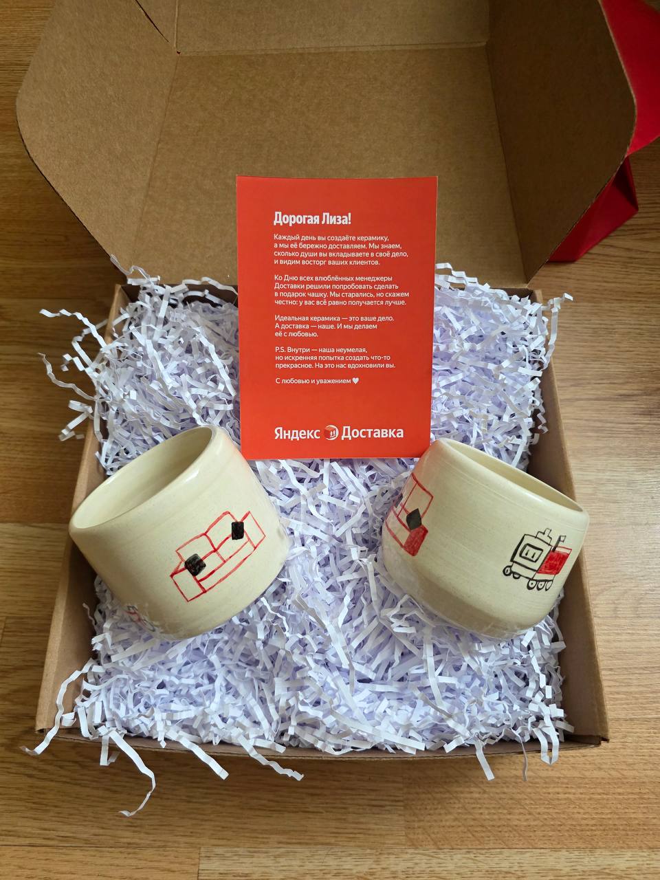 Необычные поздравления на 14 февраля — менеджеры Яндекс Доставки ЛИЧНО своими руками сделали букеты, торт и даже слепили кружки, чтобы отправить их бизнес-партнёрам.