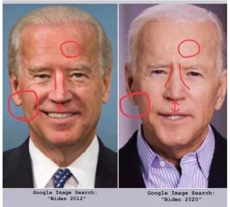 Впервые она завирусилась еще в 2020-2021 годах во время предвыборной кампании Байдена и его инаугурации . В сети начали анализировать его внешность — сторонники теории указывали на разные мочки ушей, исчезающие родинки и изменение роста, утверждая, что это признаки разных людей