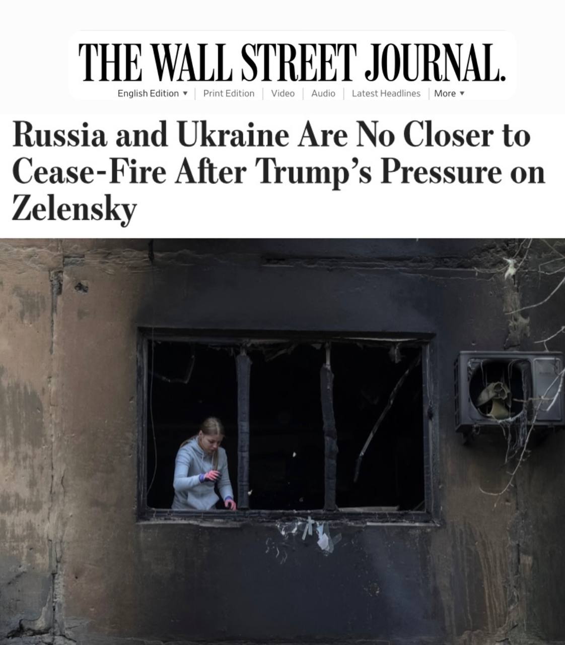 «Россия и Украина не приблизились к прекращению огня, несмотря на давление Трампа на Зеленского»: Трамп заявил Зеленскому, что его главная цель - окончание конфликта, а на потери территорий Украиной ему плевать.