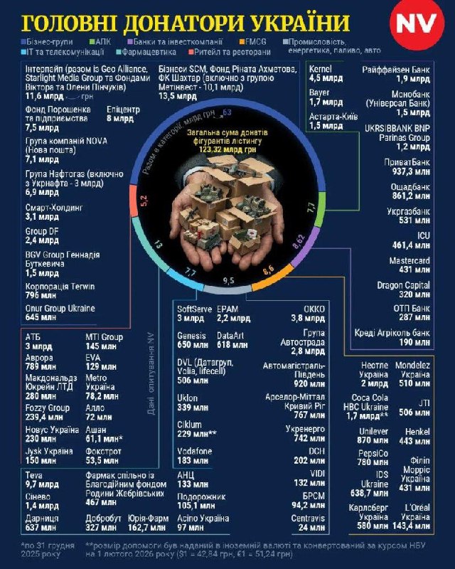 Загальна сума допомоги компаній, включених до рейтингу – понад 123 млрд грн (станом на 31.12.2025).