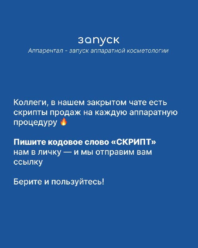 В нашем закрытом чате мы собрали скрипты продаж к каждой аппаратной процедуре.