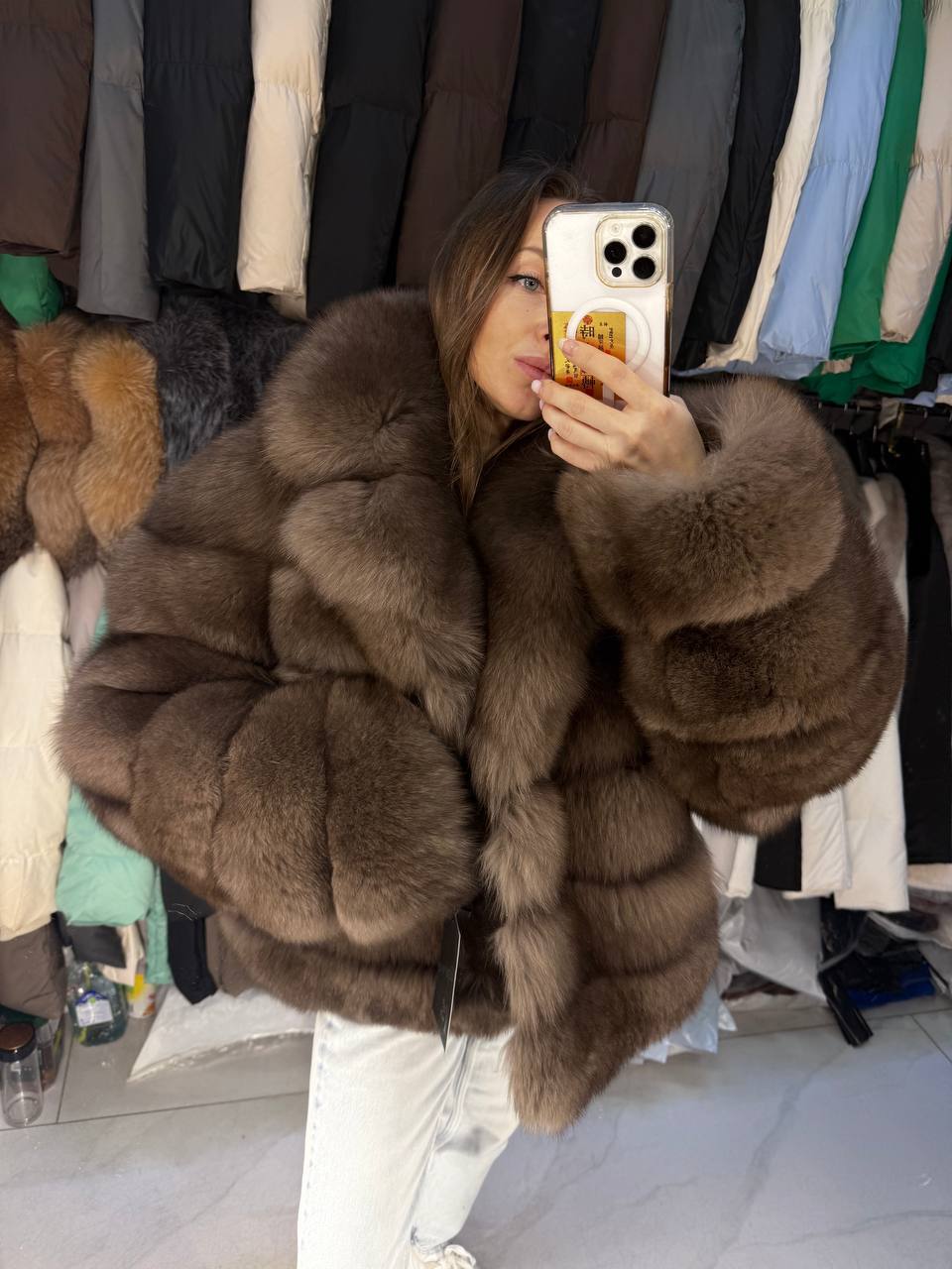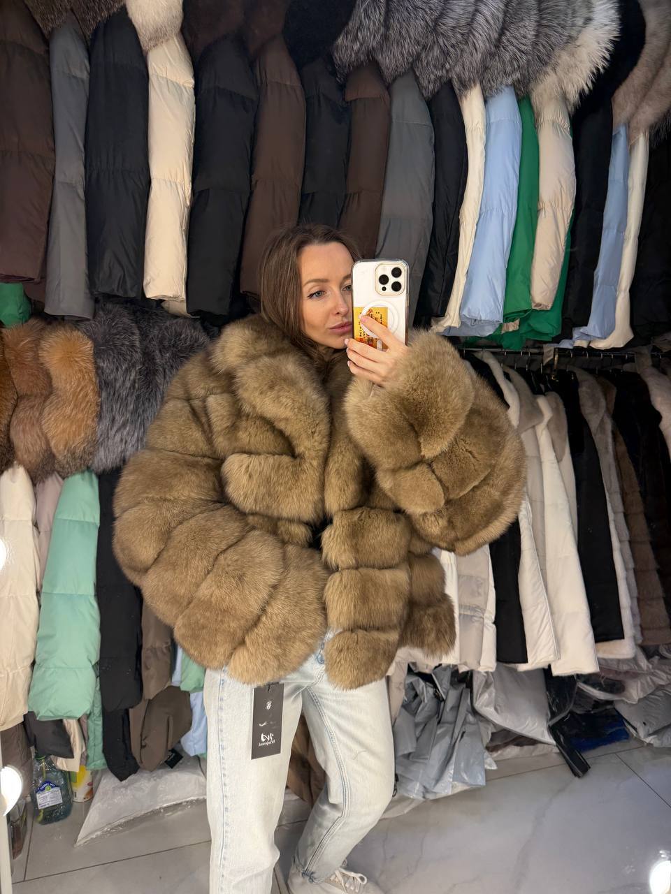 шубки мех песец 🔥 длина 60 см размер 42,44,46,48 цена 19500 руб ✅
