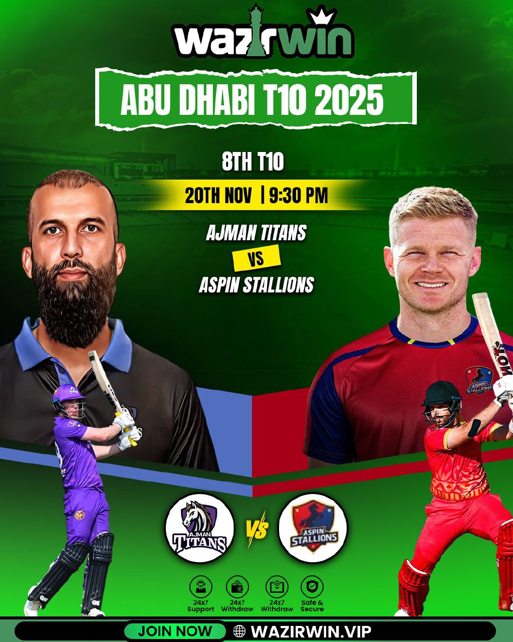 🔥 Ajman Titans 🆚 ASPIN STALLIONS 🔥 ✨ Sirf WAZIRWIN Par – Live Match Ke Saath Khelo: 🎲 Toss | 🏆 Match | 📈 Session | 💫 180+ Fancy Bets 💰 Minimum Id – ₹300 🎯 Minimum Bet – ₹100 🆓 0% Tax | 0% Commission ⚡️ Instant Deposit & Withdrawal – Zero Waiting, 100% Winning! ⬇️⬇️ Register Now ⬇️⬇️ http://WazirWin.vip http://WazirWin.vip 📢How To Deposit & Withdrawal - @WazirWinVideo ✉️Telegram link 💎 https://t.me/+jKe7-no6EgpjNmVl