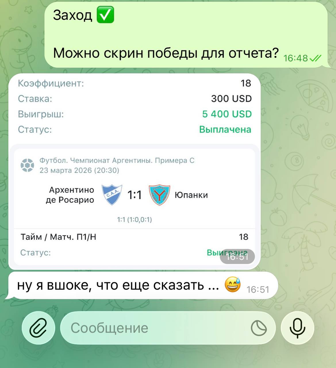 Постоянно давал вам адекватный коэффициент, сегодня все хорошие матчи - в платных экспрессах!