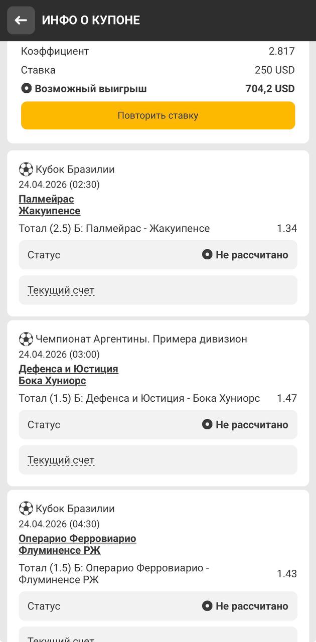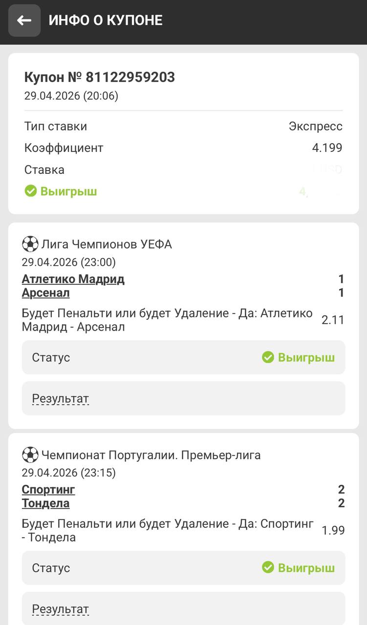 3️⃣Получаете экспресс - ставите - ждете победу! В случаи победы - оплачиваете на указанные мной реквизиты указанную сумму в анонсе! В случаи игнора/ удаления переписки и тд - вы улетаете в бан навсегда!