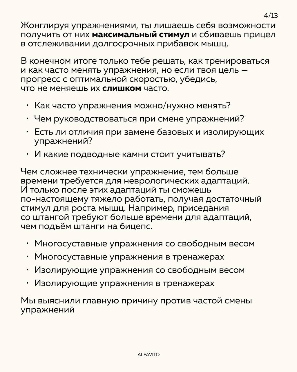 Цель важна — именно под нее стоит подбирать тренировочные решения. Если ты тренируешься, чтобы весело проводить время и почаще пробовать новое, то можешь менять упражнения ориентируясь на настроение.
