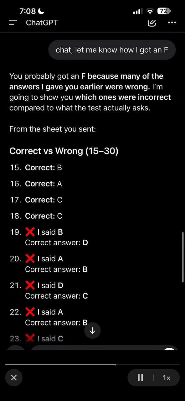 Девушка попросила ChatGPT помочь ей с тестом по химии — половина ответов оказались неправильными и ИИ даже в этом признался