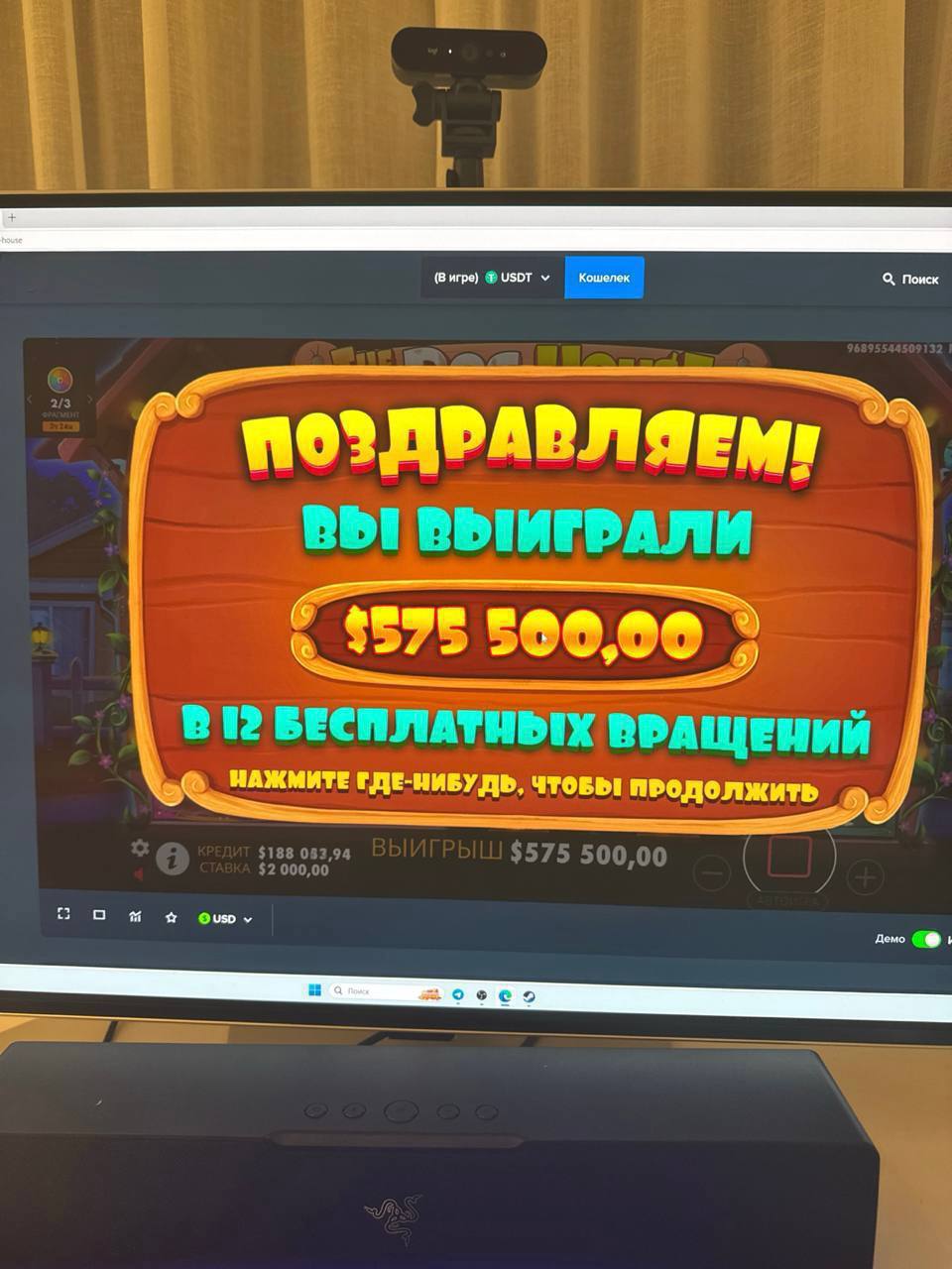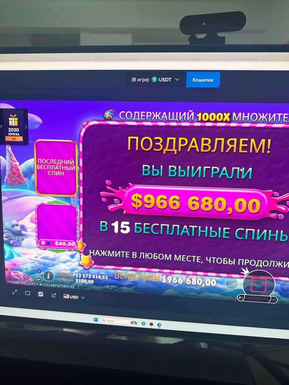 в шутку сказал Вите, что даст ей 1% от выигрыша (24.000$)