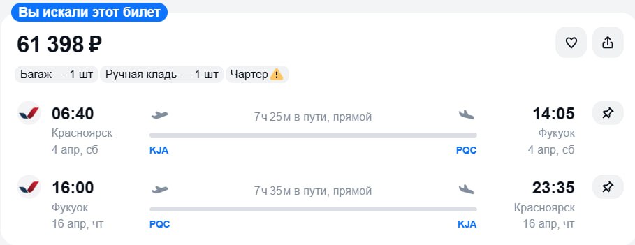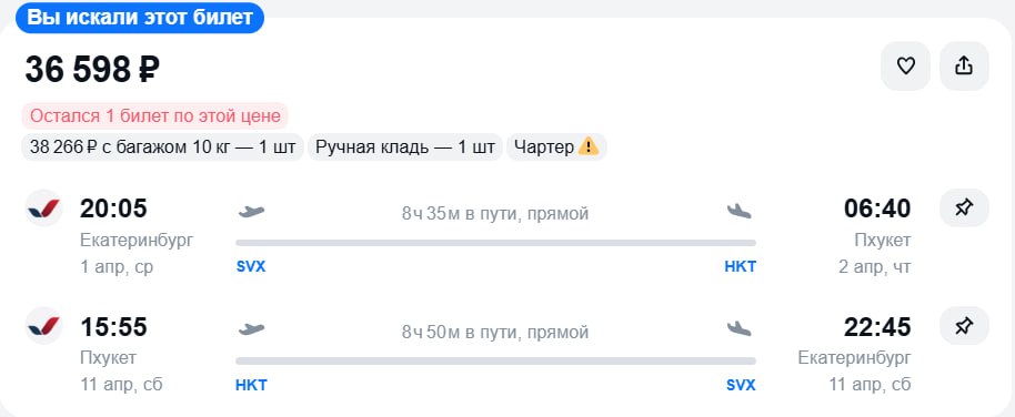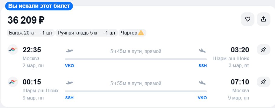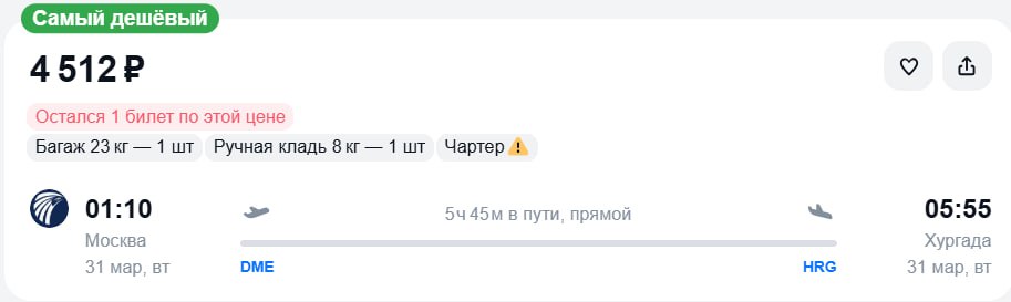 Больше билетов в канале ✈️ Чартерный