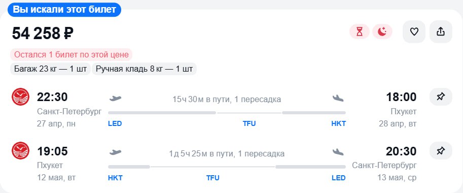 Билеты из Санкт-Петербурга на Пхукет за 54300 рублей в обе стороны, пересадка в Чэнду