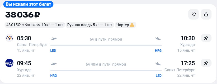 Больше билетов в канале ✈️ Чартерный