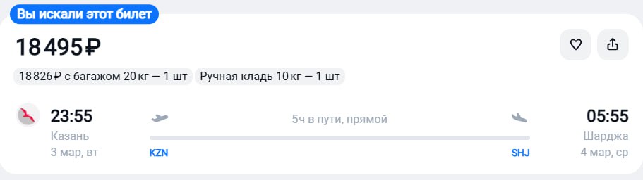 Билеты из Казани в Шарджу за 18500 рублей