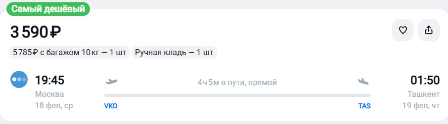 Билеты из Москвы в Ташкент за 3600 рублей