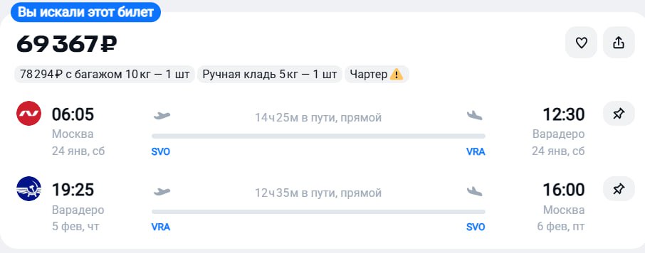 Больше билетов в канале ✈️ Чартерный