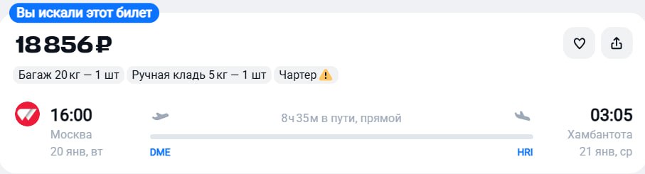 🔥Чартер из Москвы в Хамбантоту за 18800 рублей