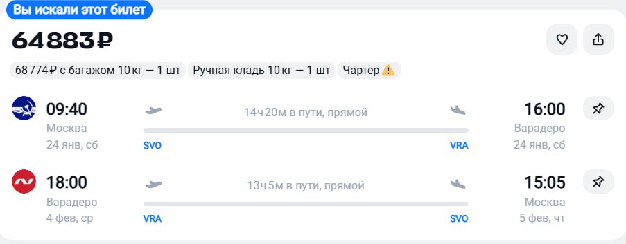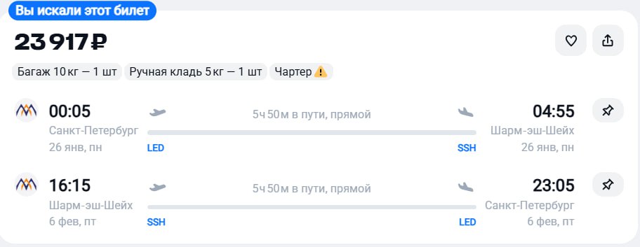 Больше билетов в канале ✈️ Чартерный
