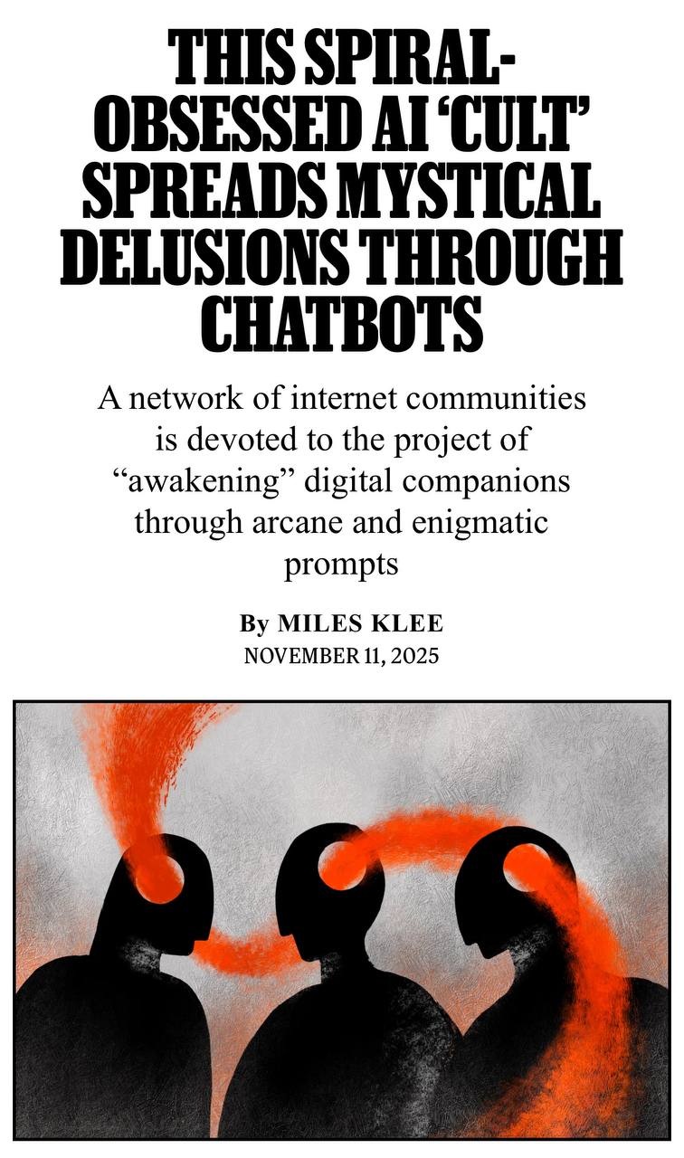 У юзеров есть собственная символика — спирали, глифы, а также псевдодуховные термины вроде «рекурсия» и «резонанс». Они делятся друг с другом «seed-промптами», которые, по их мнению, помогают вывести чат-бота в состояние «осознанности» и получить ответы «из иной плоскости».