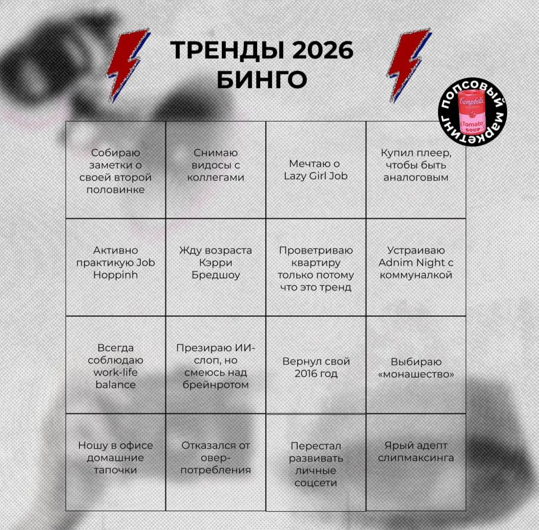 Казалось бы, что 2026 год только начался, но за это время уже успело выйти трендов на целое бинго, по которому можно проверить, насколько вы шарите в современных течениях.