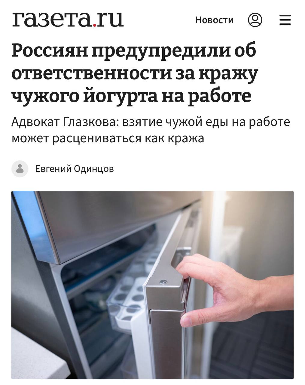 За чужой йогурт из офисного холодильника можно получить до 15 суток ареста и лишиться работы, заявляют юристы.