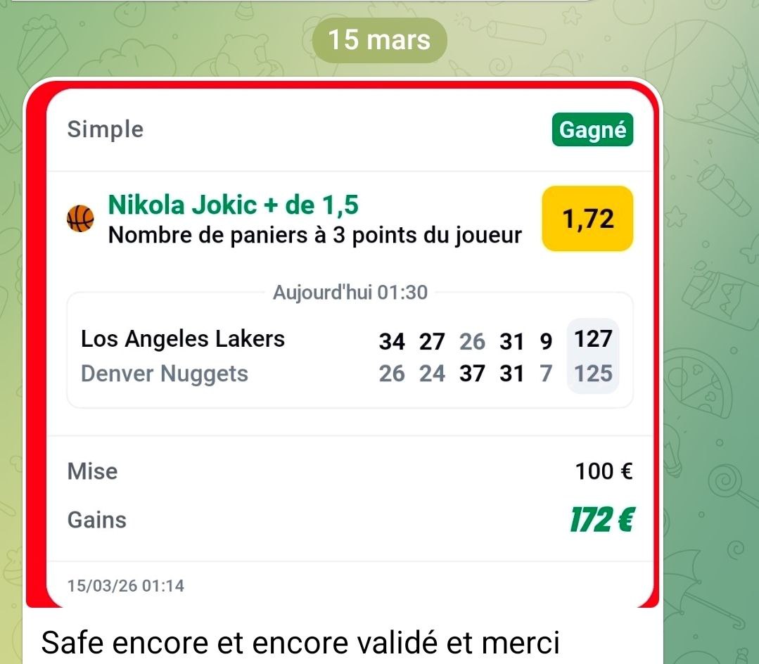 On encaisse encore et encore en SAFE ❤️ avec JOKIC 2 paniers à 3 points 1,70 ✅
