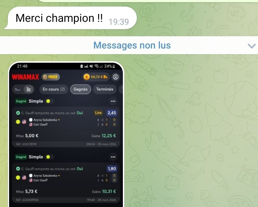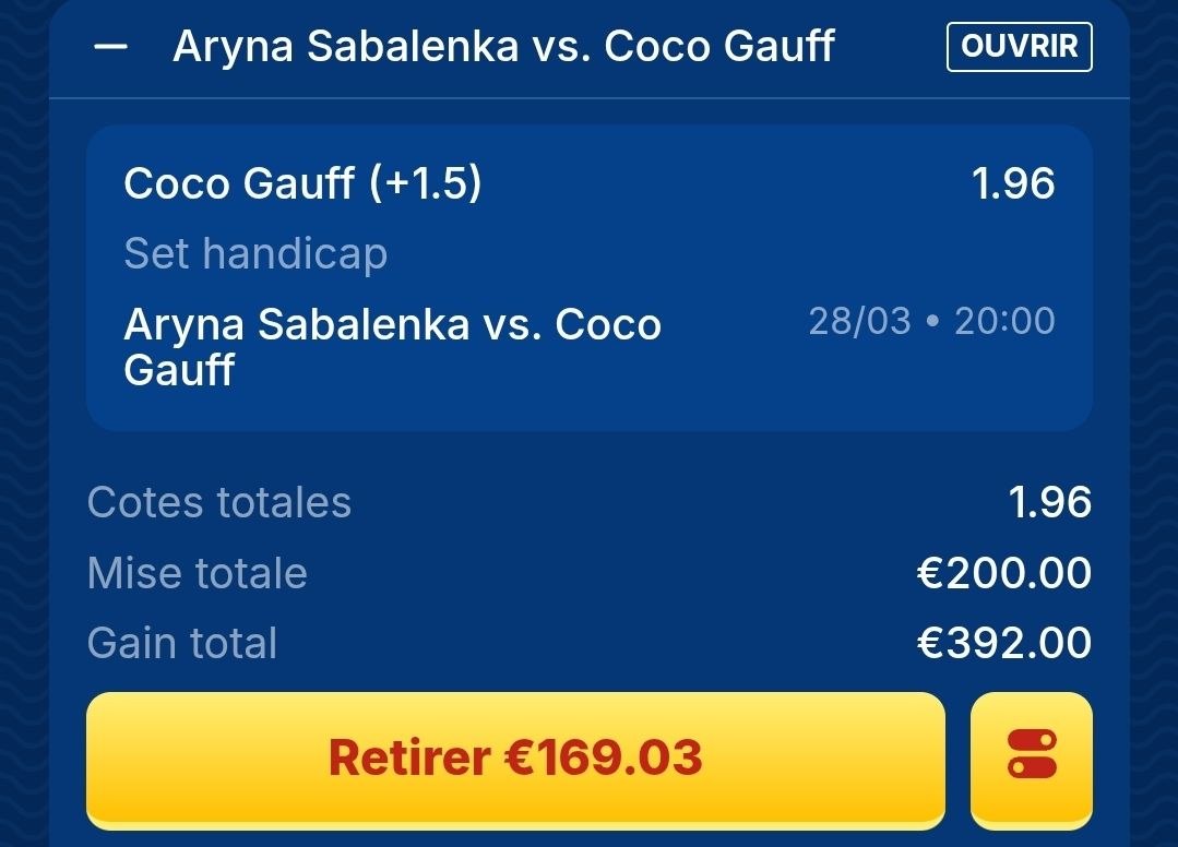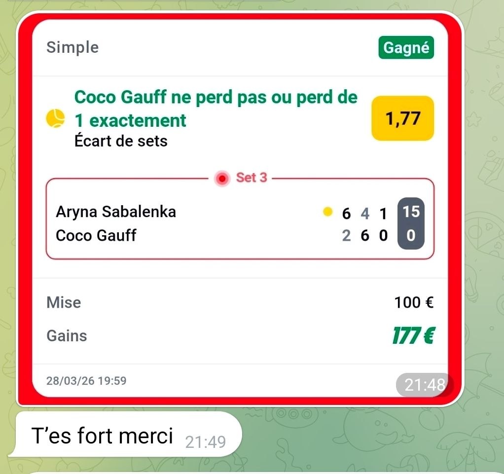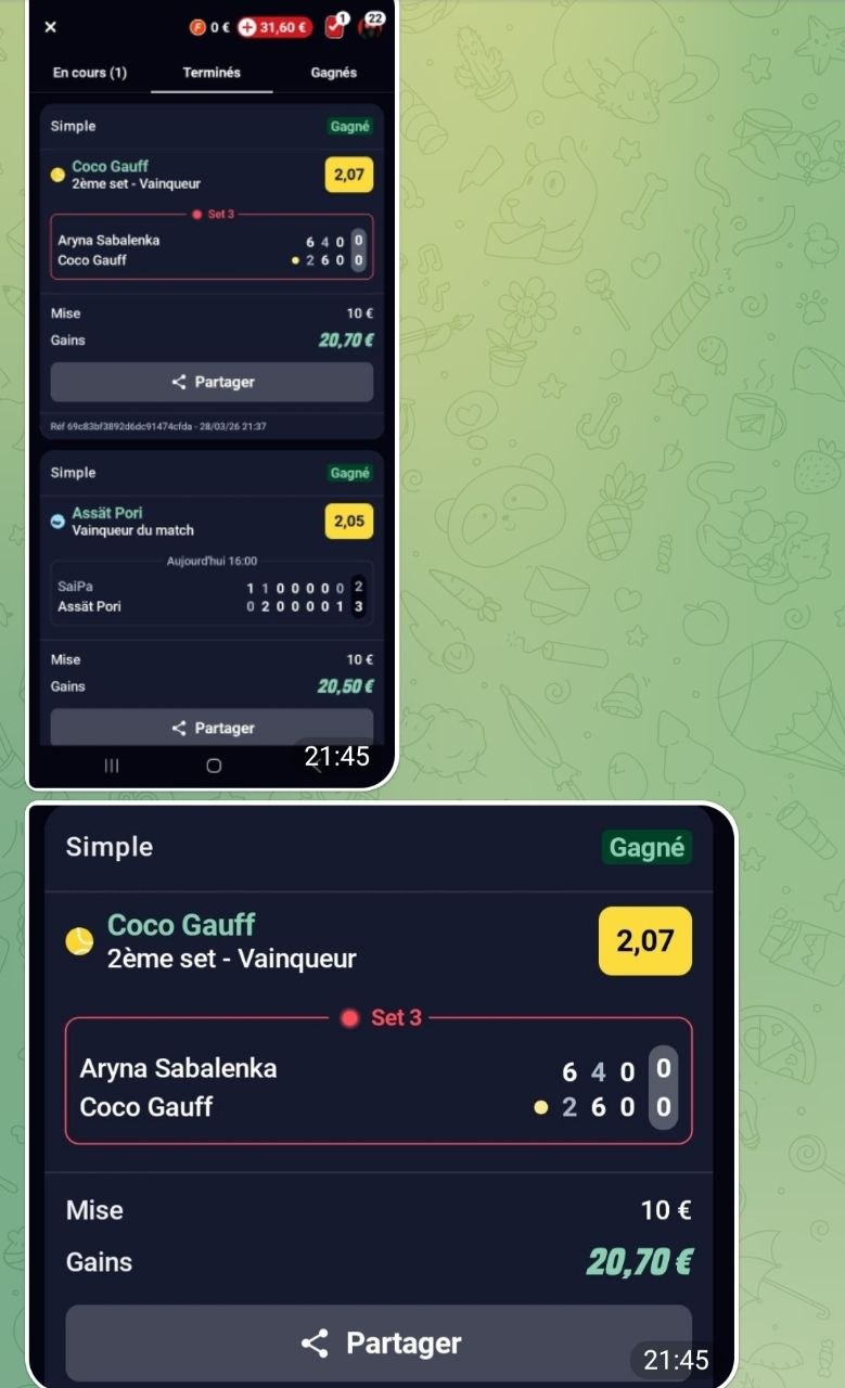 On valide GAUFF 1 set 2,00 en SAFE  ✅ et à 3 en live 👌