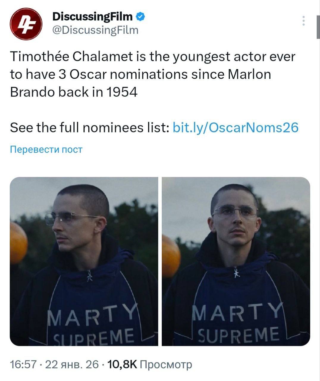 А Тимоти Шаламе стал самым молодым актером, который успел взять 3 номинации со времен номинации Марлона Брандо в 1954