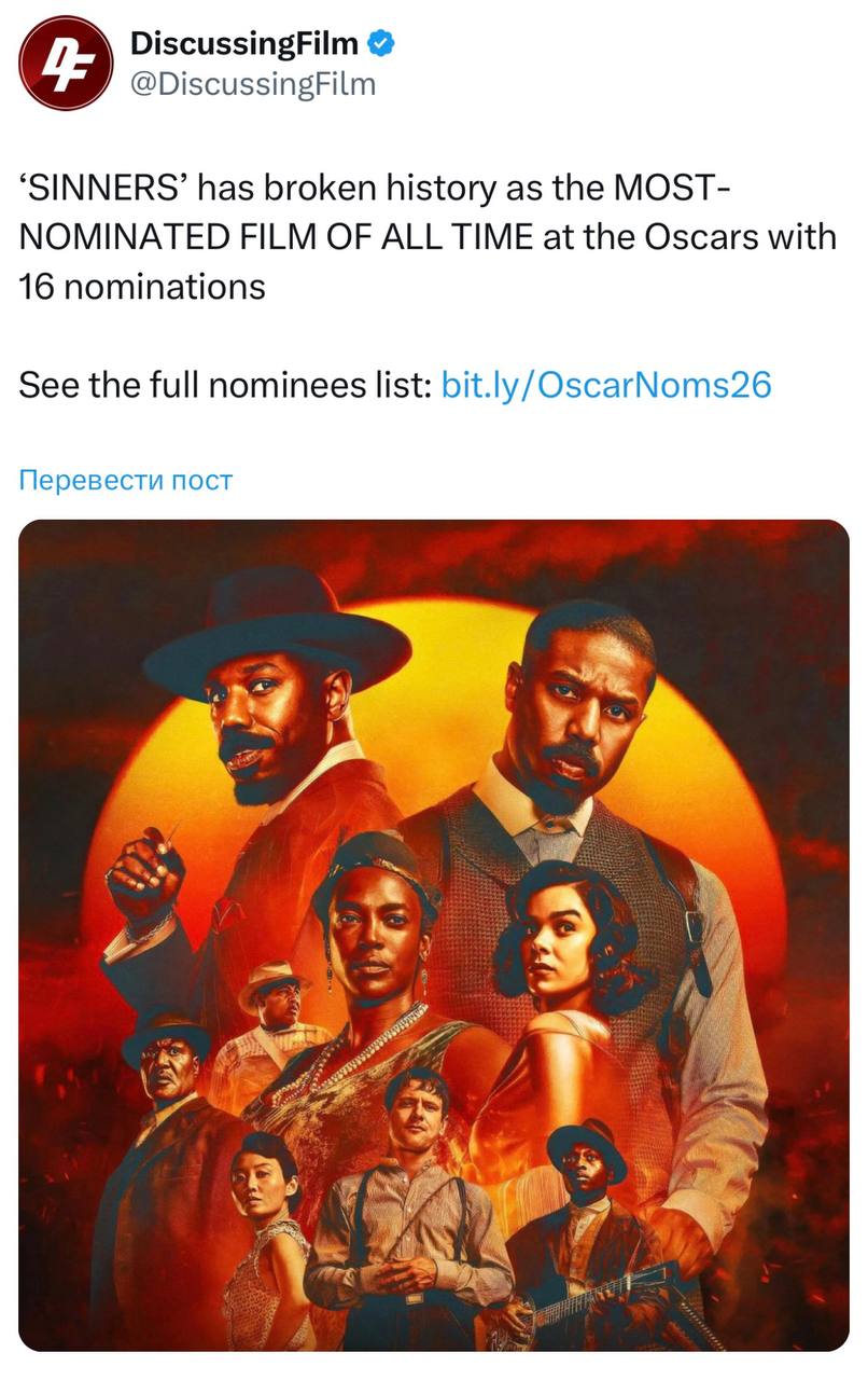 Фильм Грешники выдвинули аж в 16 номинациях — это исторический рекорд