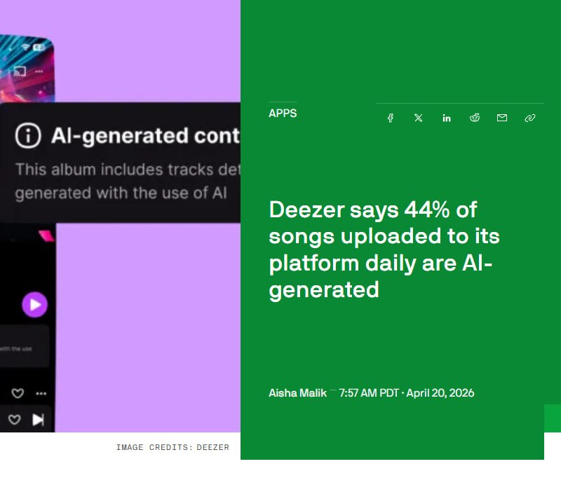 На Deezer, одном из крупных забугорных стримингов, уже 44% всех новых треков сгенерированы ИИ. Их заливают по 75 тыс. в день. Но их, конечно, никто почти и не слушает, и до 85% из них — фрод, который сервис режет, чтобы бы темщики не накручивали себе роялти