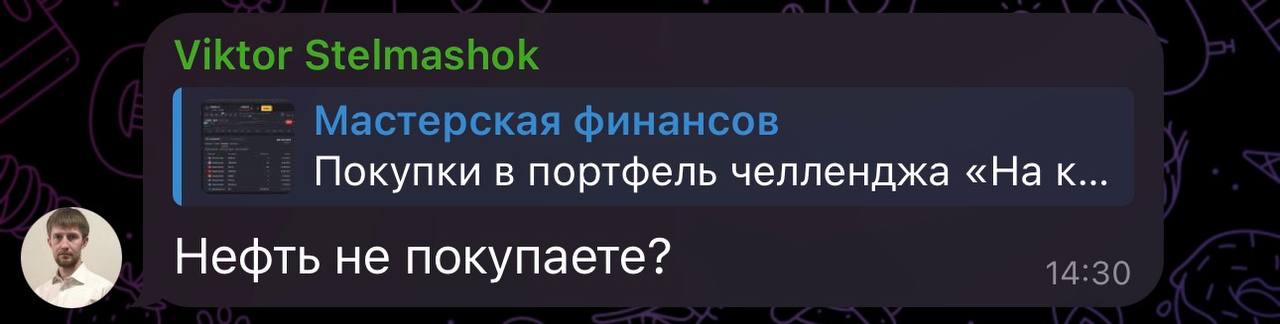 ⚠️ В портфеле челленджа у нас есть Новатэк, Сургутнефтегаз, Транснефть, Фосагро, т.е. прямые бенефициары ситуации вполне себе присутствуют, причем купленные в целом по ряду фундаментальных причин, по хорошей цене, а не конкретно из-за текущих событий.
