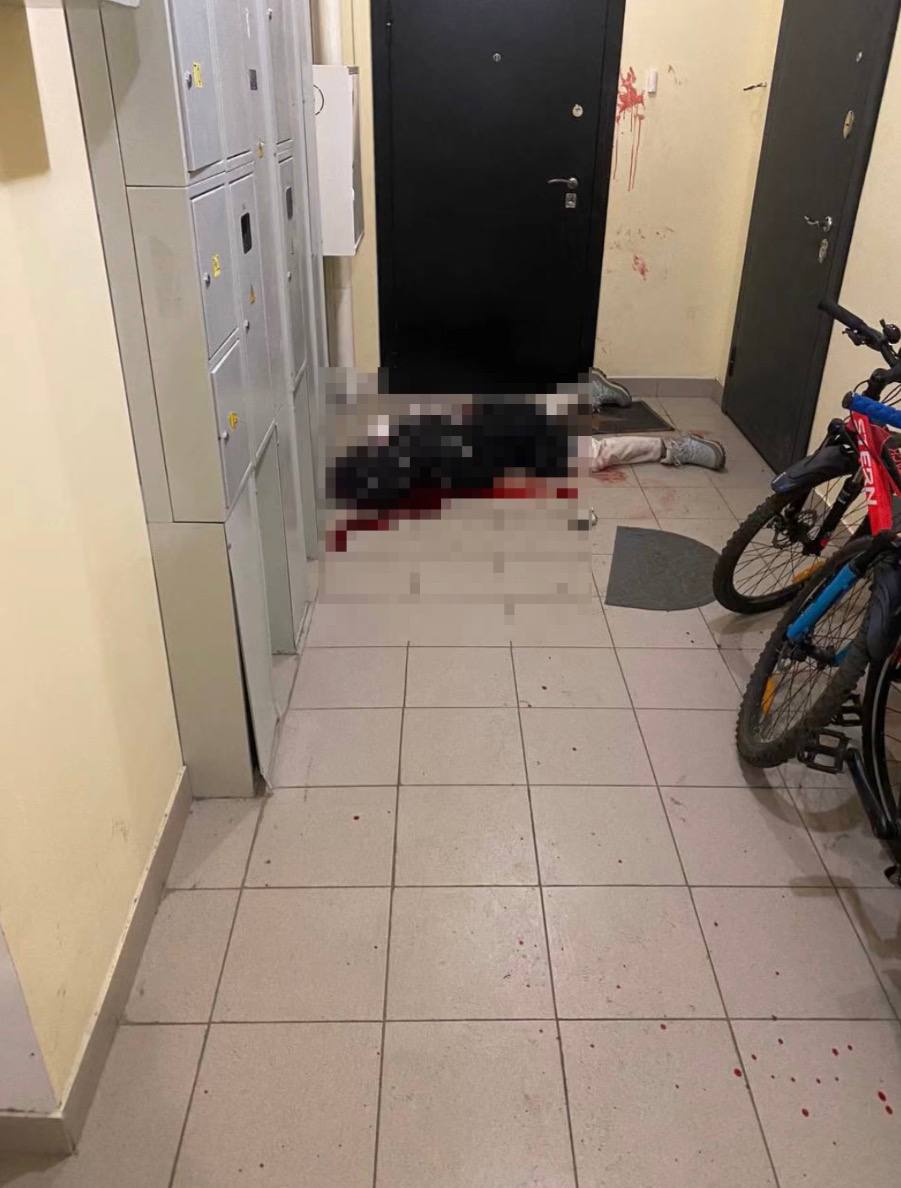 Соседку, прибежавшую на крики, госпитализировали в тяжёлом состоянии, у неё множественные ножевые ранения.