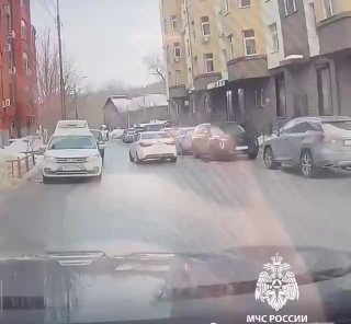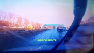На кадрах с регистратора видно, что снег и лед сходили с надземного перехода в несколько этапов: первый пласт упал перед фурой, а следующий прилетел точно в легковой автомобиль, ехавший в левом ряду.