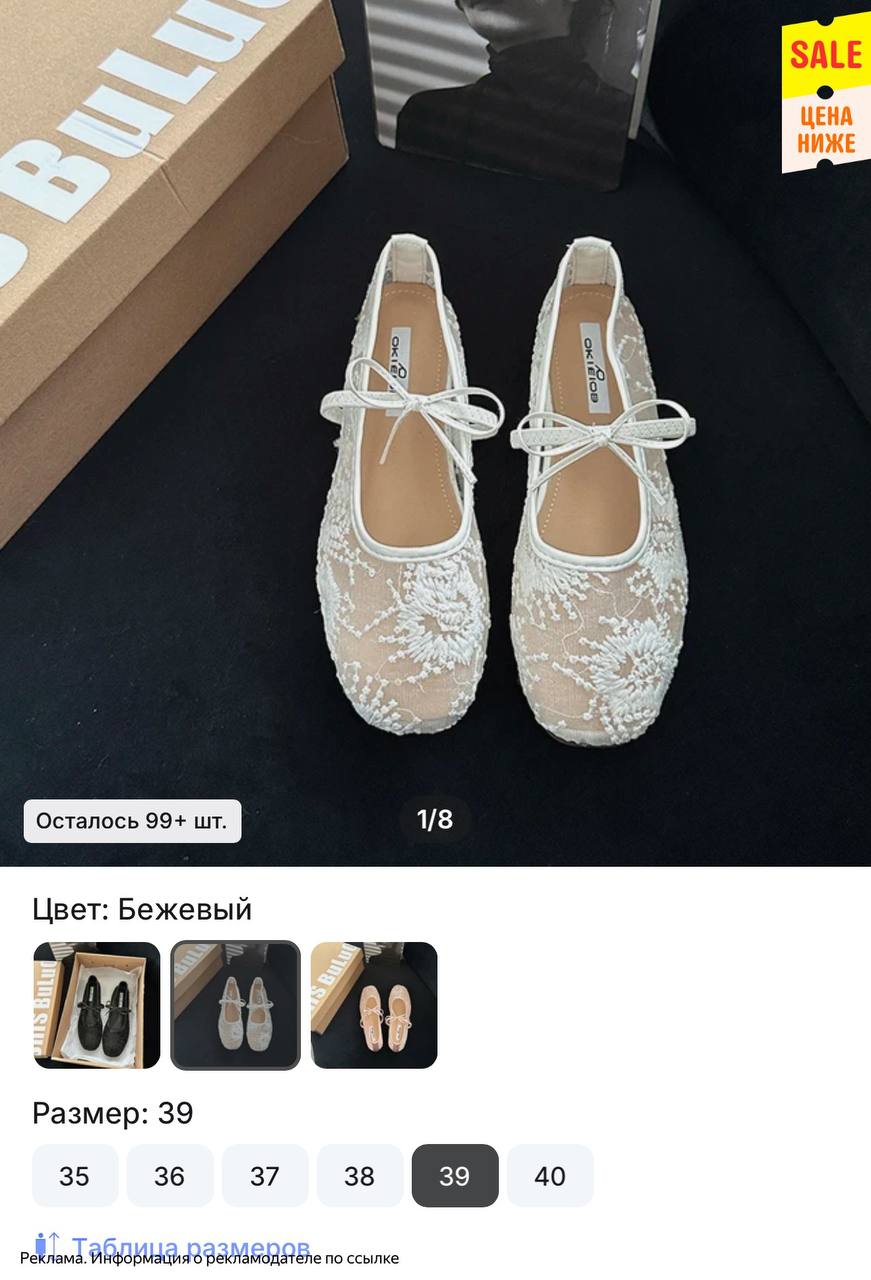 Трендовые ажурные балетки сейчас со скидкой 56%🔥
