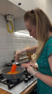Параллельно обжариваю немного моркови и лука, чуть присаливаю.