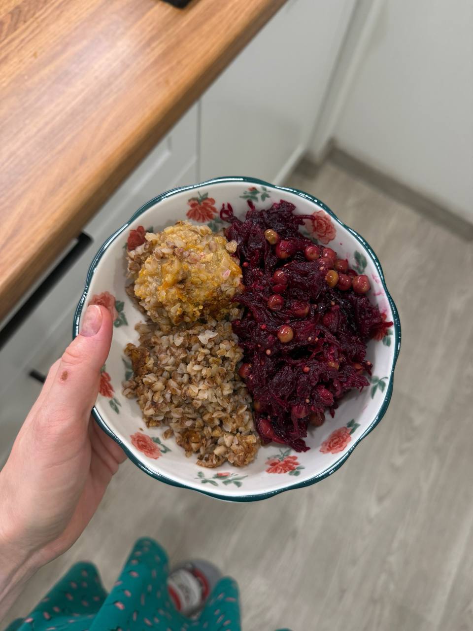 На ужин ёжики с гречкой. И салатик со свеклой подсмотрела у своей коллеги-блогера- Нади. Очень вкусно 💔