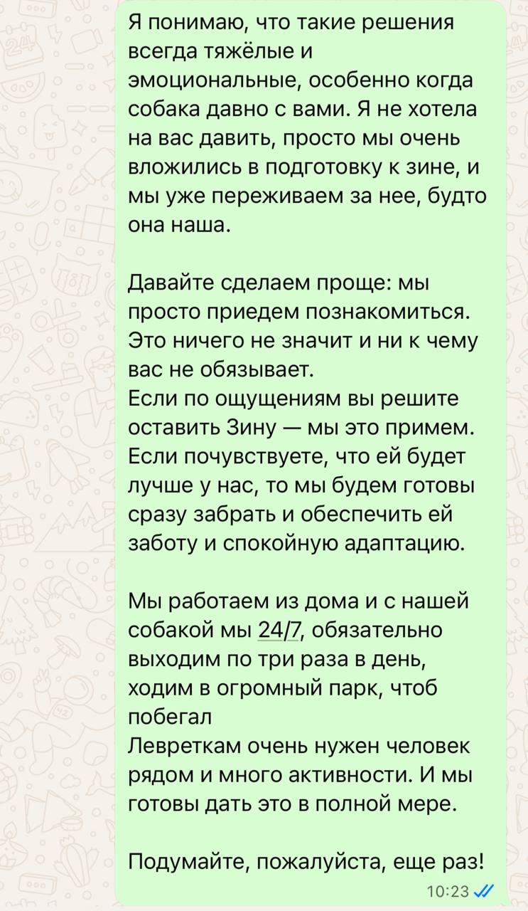 Ужасно виню себя, что спугнула ее, что вдруг где-то неосторожно спросила. Или, что надо было настоять, придумать причину, почему мы можем забрать в конкретный ближайший день, чтоб она не успела опомниться.