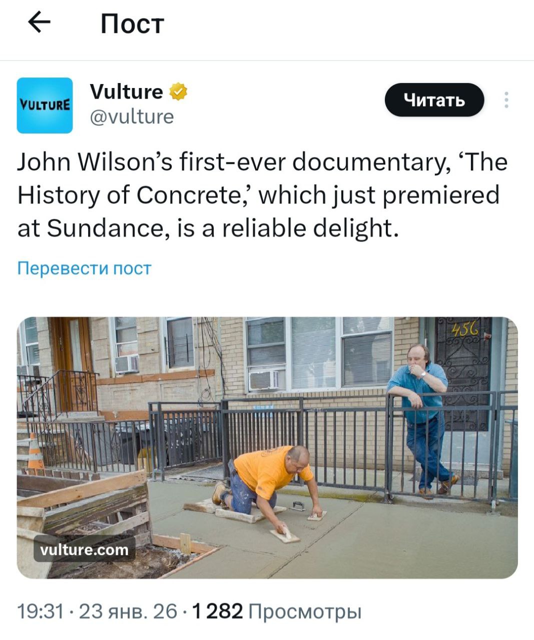 Американский режиссёр Джон Уилсон снял фильм про бетон и стал самым ожидаемым автором на фестивале Сандэнс в этом году. Если никогда не слышали про него, советую ситуацию срочно исправить.