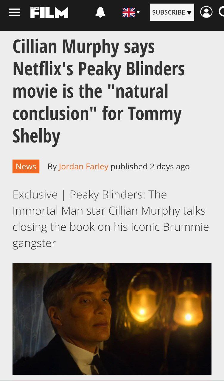 Киллиан Мёрфи считает фильм по «Острым козырькам» естественным завершением истории Томаса Шелби. Актёр рассказал, что «Острые козырьки: Бессмертный человек» — это его последнее появление в этом образе.