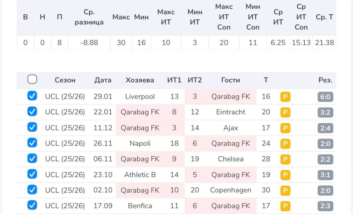 Отталкиваемся от гостевой Аделаиды: индивидуальный тотал противников – 7 ударов в створ против 3,57. Проход по Ф(-2,5) на соперника: 4+ 3-, но это общая статистика, если более детально и с фильтрами по подобным командам: 2+ 0-.