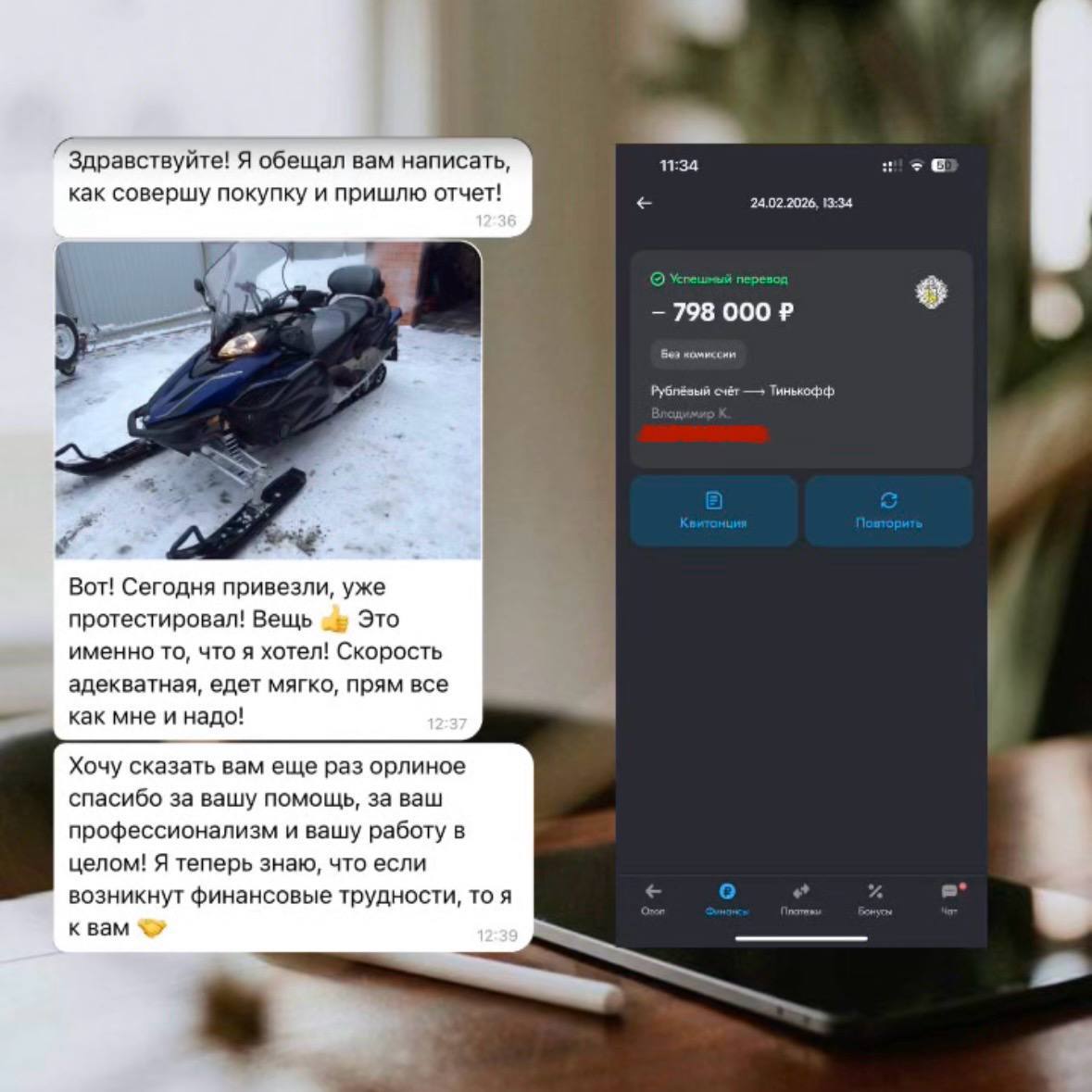 «Я его купил. Снегоход. Давно мечтал выезжать зимой за город — тишина, лес, скорость, ощущение свободы. И самое главное — я понимаю, что это не импульс, а результат продуманного пути».