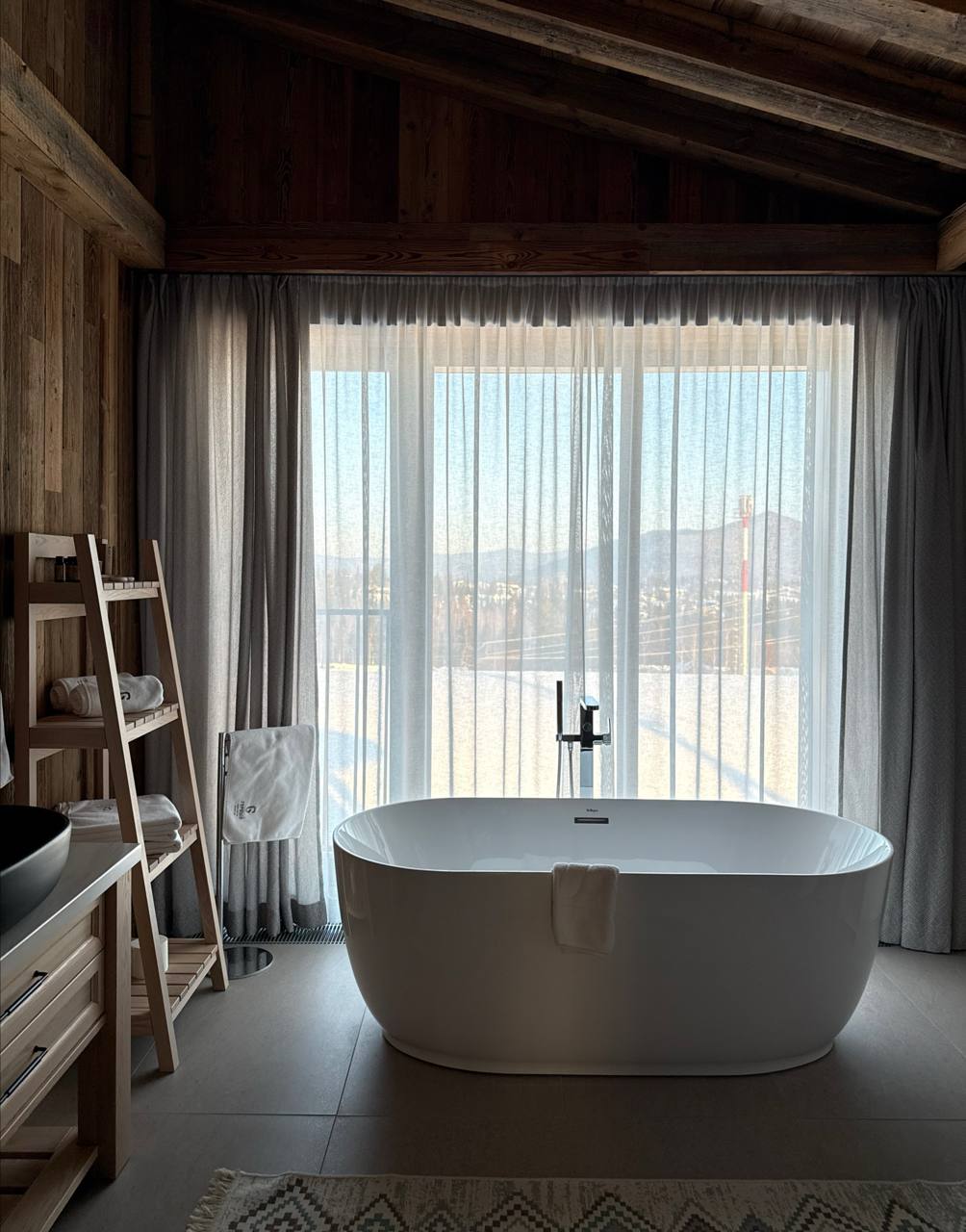 Уже заселились в домик, разложили вещи по шкафам, 2 раза попытались выпить кофе, 2 раза поплакали, 1 раз покушали и много, много раз полюбовались видом за окном 🌄