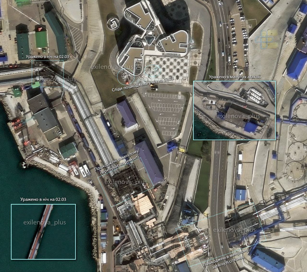 Після аналізу супутникових знімків високої роздільної здатності підтверджуємо ураження термінала «Шесхаріс» у Новоросійську.