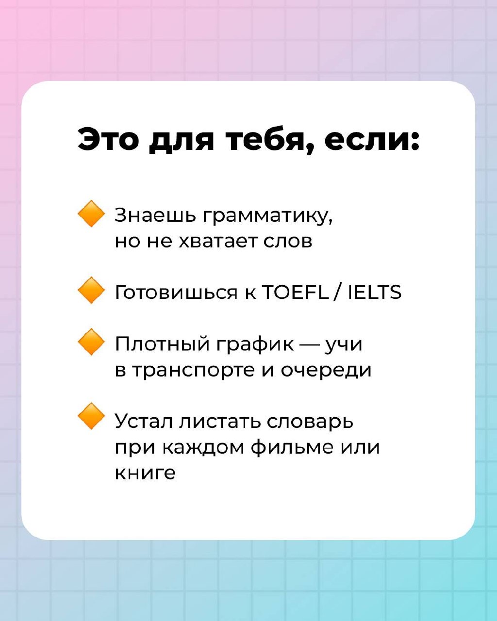 И, конечно, поработаем над языковым барьером, чтобы вы могли говорить на любые темы без ступора! Старт уже в 10 апреля