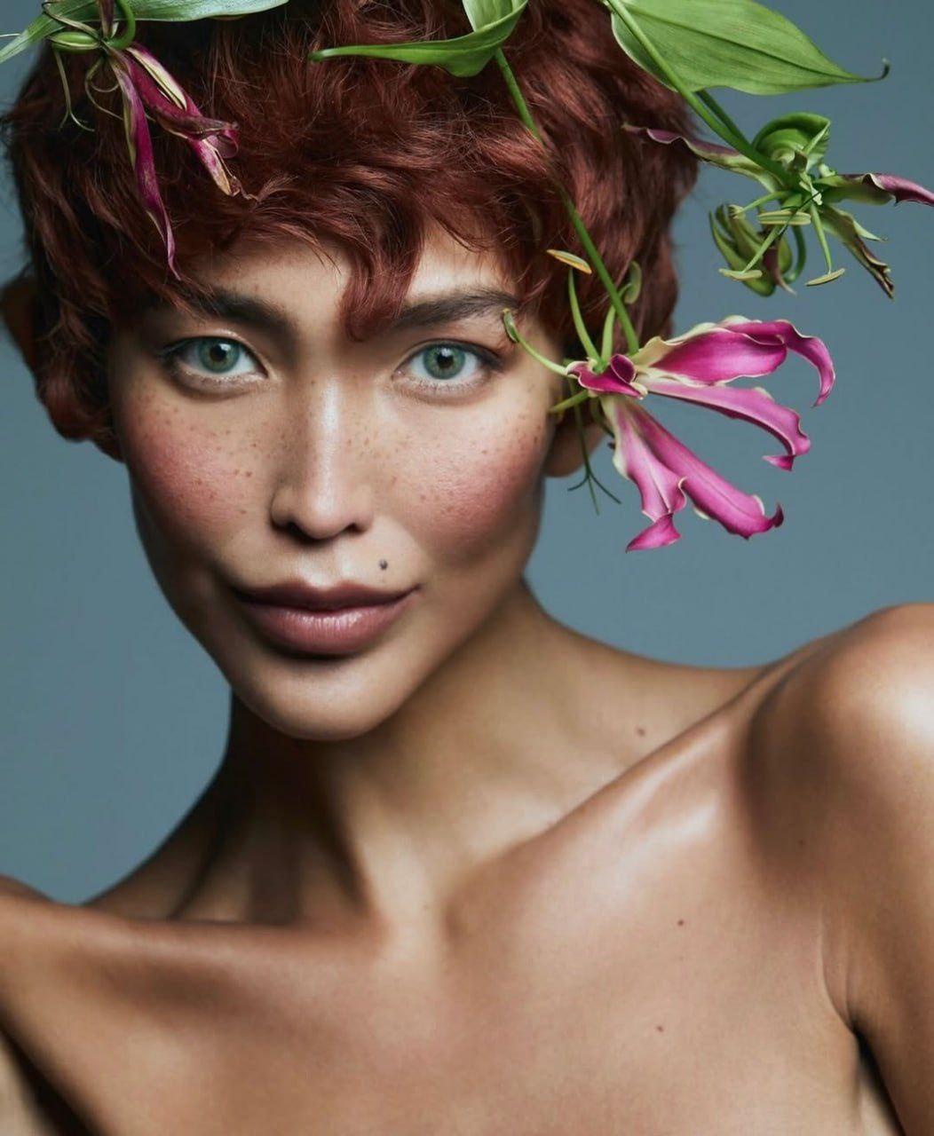 У меня самой никогда не было седых волос, потому-то я их не красила, хотя всегда хотела попробовать рыжий. Все ждала, пока начну седеть. В итоге, волос нет ни седых, ни каких-либо, зато парик — с седыми волосами!)